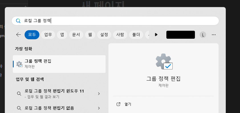 또는 윈도우 검색에 ‘그룹 정책 편집’ 검색